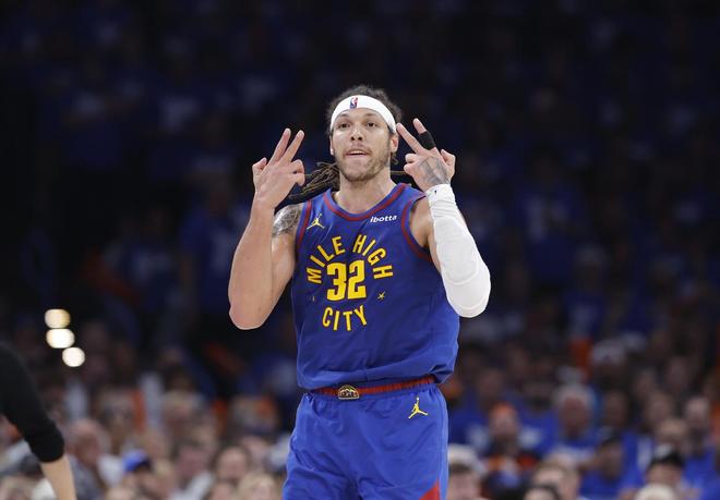 第三节,可是从更衣室回来,掘金突然手感冰凉,全队找不到手感,在三分线上连续打铁,第三节掘金全队3分球是11中2,其中戈登又命中了一记三分,三节战罢,双方打成94比94平,回到同一个起跑线。